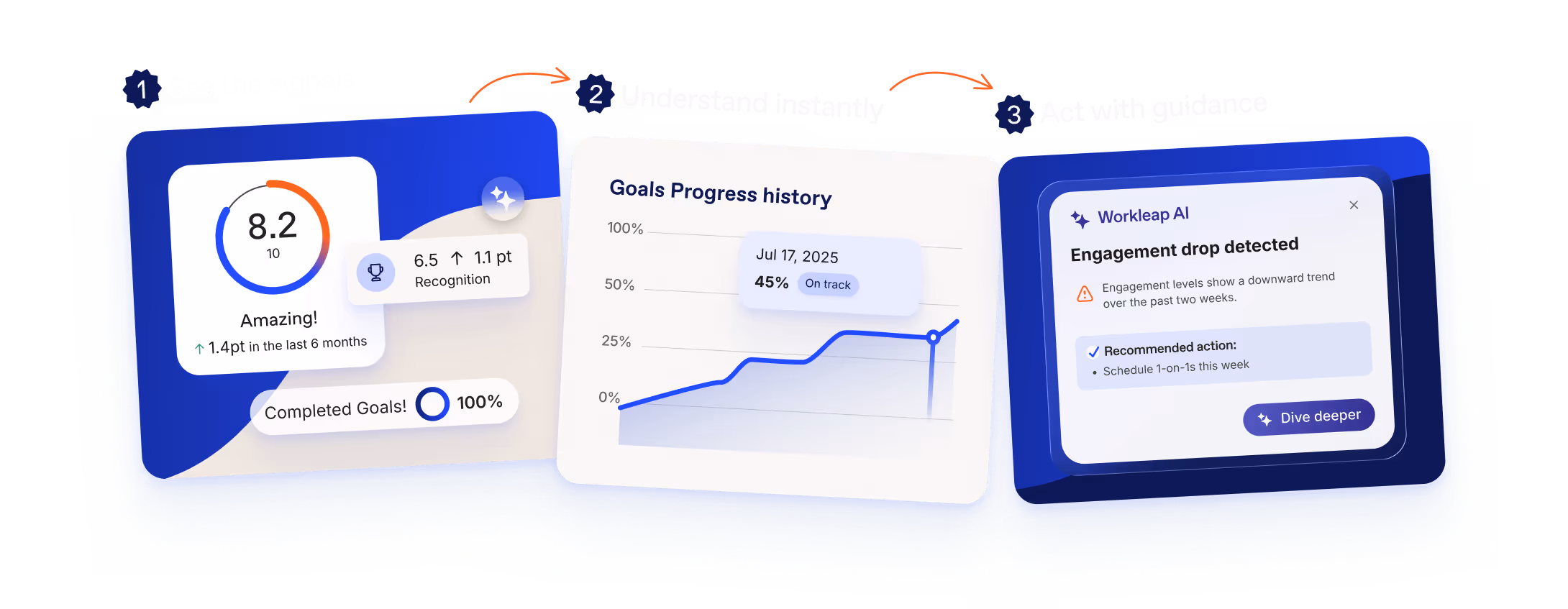 Every Workleap product is enhanced with AI capabilities thatβ¨help you understand, predict, and act on people data. From engagement insights to performance summaries, AI amplifiesβ¨your impact across all people management activities.