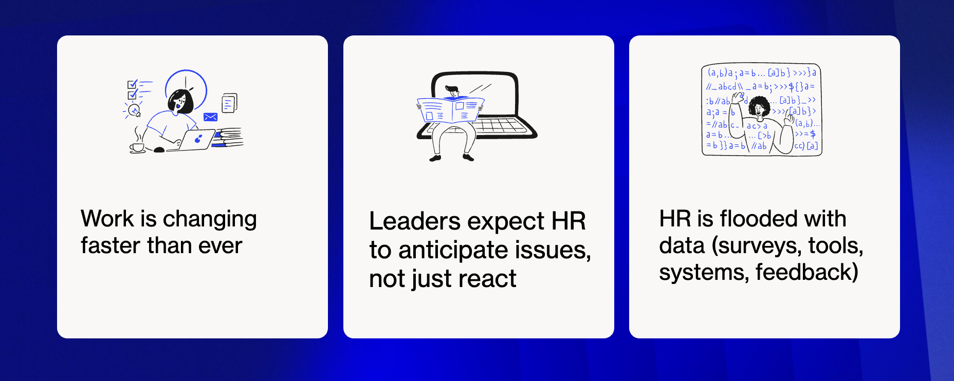 HR has never been more strategic. Leadership teams expect HR to anticipate risks, translate people data into decisions, and shape culture through times of constant change. At the same time, HR is flooded with information—pulse surveys, engagement tools, exit data, performance notes, feedback channels, and more.