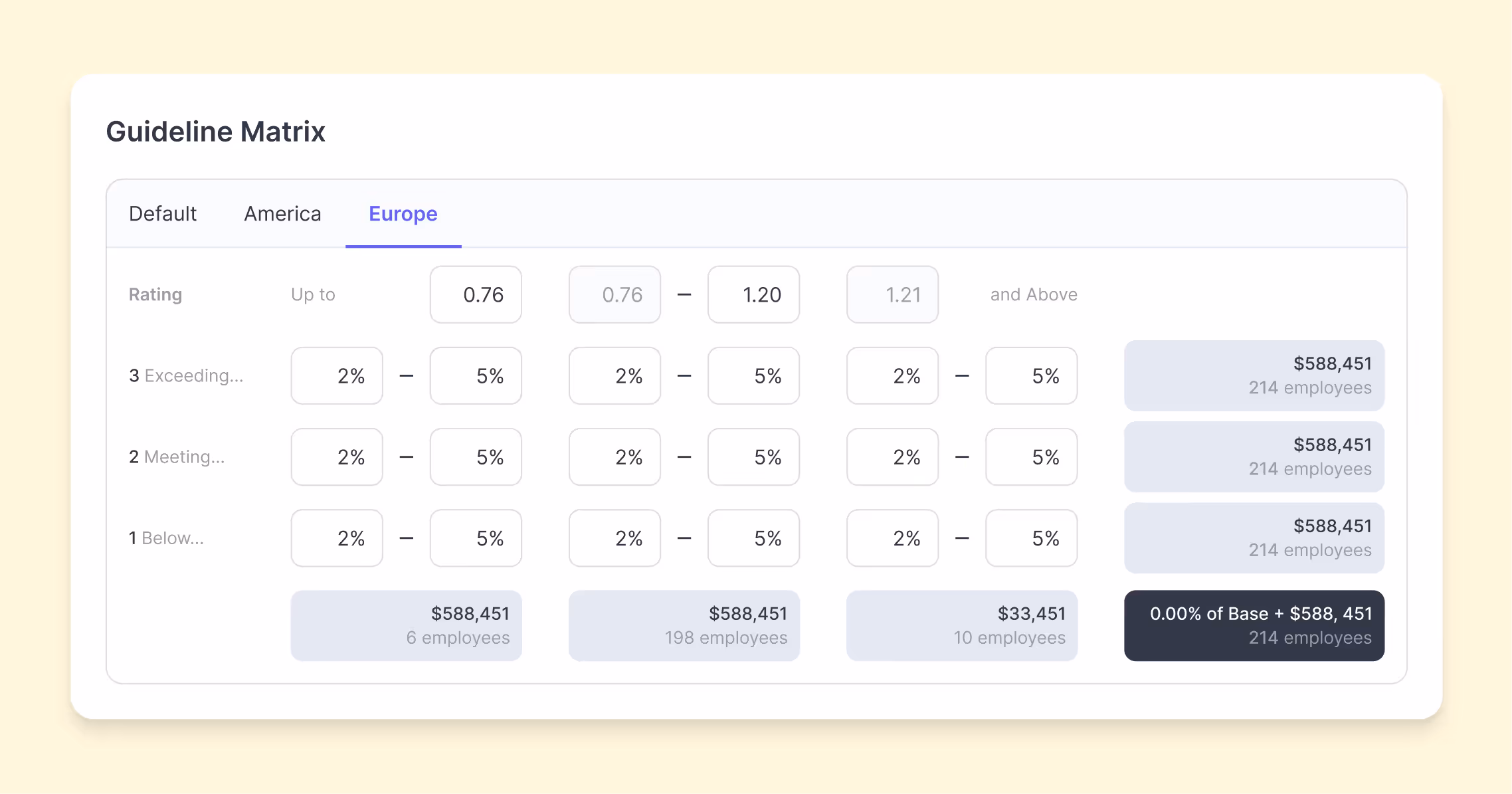 As noted previously, when it comes to pay across different geographies, consider building a different merit matrix by Pay Zone. If you are leveraging compensation management software to streamline your compensation review process, ensure that the system is flexible enough to support managing multiple merit matrices at the same time.