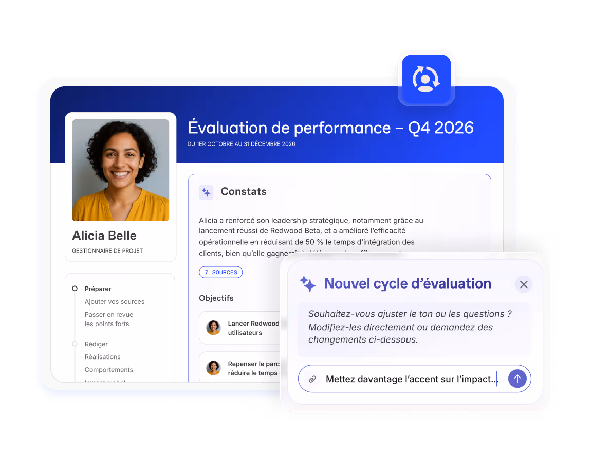 - Aidez les responsables avec des entrées 360 degrés et des insights résumés par l'IA